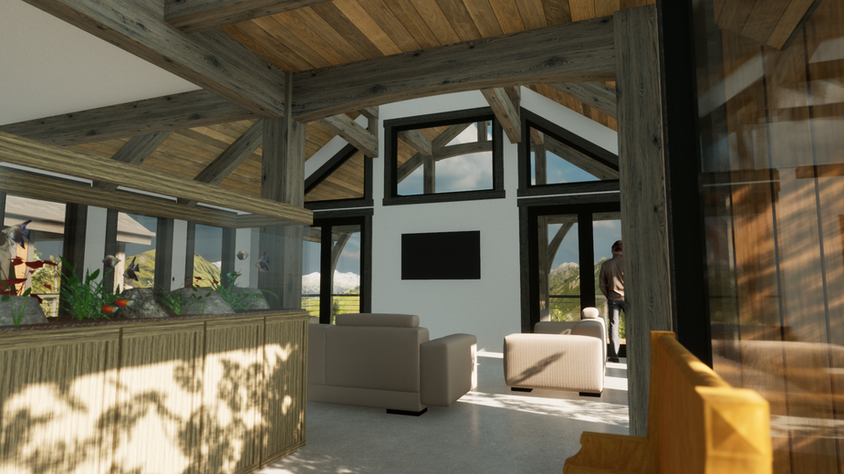 Somewhat eclectic, this home combines the aesthetics of a rustic mountain home with the pragmatism of a modern open concept layout. The timbers reflect this whimsical mashup, equal parts rustic, classic, and modern.